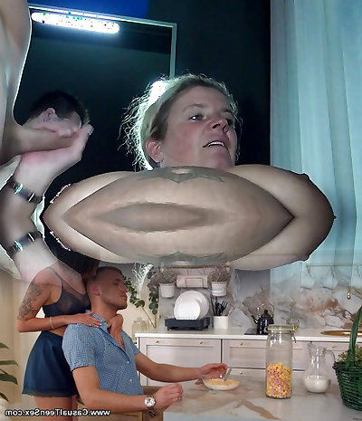 Naughty redhead white slut in the kitchen having anal fuck-fest
