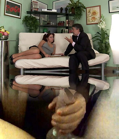 Brunette German granny gives a nice rimjob to her accomplice