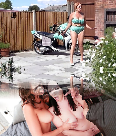 Red head bbw takes 2 big cocks outdoor