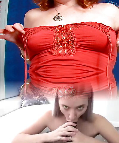 Hot redhead and blonde milky milfs give double blowjob